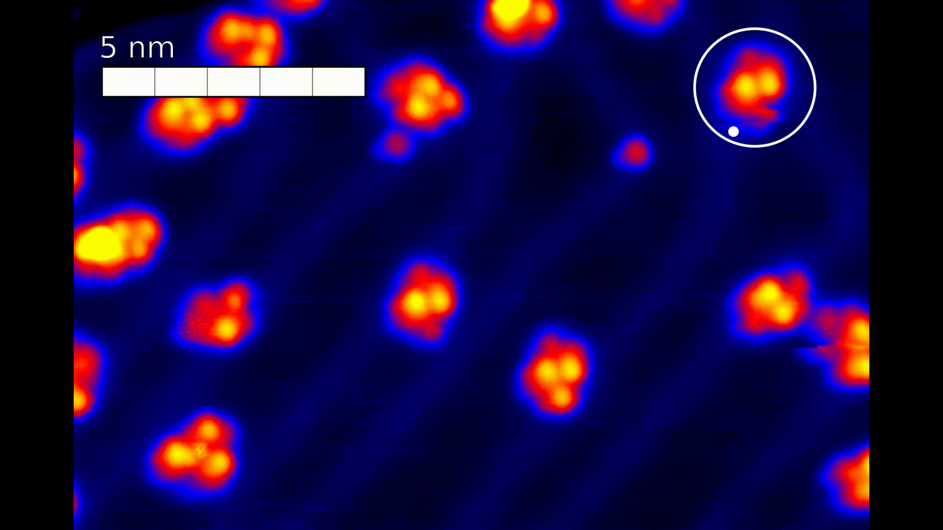 In dieser Winzig-Welt lässt sich natürlich nichts mehr mit dem bloßen Auge oder mit klassischen Mikroskopen erkennen – es braucht dafür ganz besondere Hightech-Maschinen, sogenannte Rastertunnelmikroskope (englisch „scanning tunneling microscope“ – STM). Diese gleiten mit einer sehr feinen Mess-Spitze (Sonde) über die jeweilige Probe. Aufgrund der angelegten Spannung zwischen Sonde und Probe lassen sich mittels quantenmechanischem Effekt Erkenntnisse über die Oberflächenstruktur des untersuchten Objekts machen – und zwar mit einer Auflösung bis zur Größe von einzelnen Atomen! Doch beim NanoCar-Rennen dienen die STMs nicht nur der Beobachtung der winzigen Rennwagen, sondern sie sorgen auch für deren Fortbewegung. Denn mittels der angelegten Spannung lassen sich Moleküle auch bewegen, wenn sie einen geeigneten Aufbau haben.