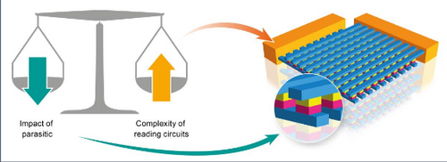 Sketch of the co-design of area-dependent heterostructure devices and CMOS circuits for in-memory computing. In Phase 1, 2D cross-bar arrays will be addressed. In the subsequent phases, the extension to 3D arrays is envisioned.